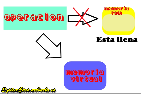 Esta memoria funciona como La Memoria RAM, en diferencia que solo se activa cuando ya no hay espacion en la RAM. Es decir esta es una memoria que activa El sistema Operativo cuando ya no existe espacion en tu Memoria RAM para poder realizar la operacion que realizarás, Esta memoria tiene mucho mas espacio que la memoria RAM.